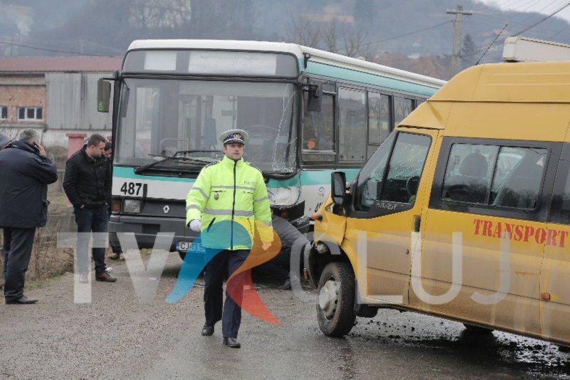 Trei copii au ajuns luni la spital, după ce microbuzul şcolar în care se aflau a intrat pe contrasens şi s-a tamponat cu un autobuz plin