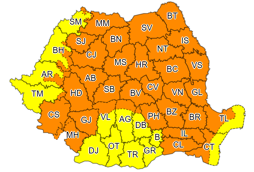 Avertizare cod portocaliu de vijelii, grindină şi averse pentru județul Cluj, transmit meteorologii în această după amiază. Conform ANM, joi, de la ora 16:25 până la
